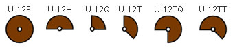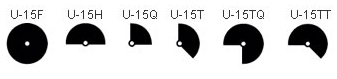 Легенда: F - пълен кръг; H - 1/2 кръг; Q - 1/4 кръг; T - 1/3 кръг; TQ - 3/4 кръг; TT - 2/3 кръг