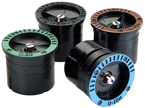 Патентованата дюза серия U е първата пластмасова дюза с втори отвор за близко поливане до стеблото и по-равномерно разпределение на водата. Този уникален дизайн намалява времето за поливане, спестява вода и пари, и редуцира загубите. Дюзите от серия U се съвместими с всички разпръсквачи тип "спрей" на Rain Bird и може да се използва с новите подобрени филтърни екрани. Дюзите от тази серия са цветно обозначени отгоре, за по-бързо и лесно инсталиране.