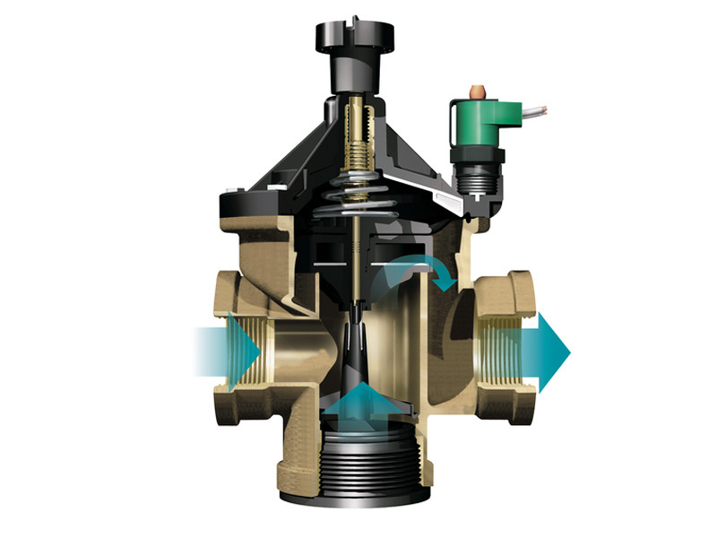 - Възможност за принудително ръчно пускане, като гарантира липсата на вода в шахтата за достъп. Позволява настройка на регулатора на налягане без да се включва клапана от програматора.