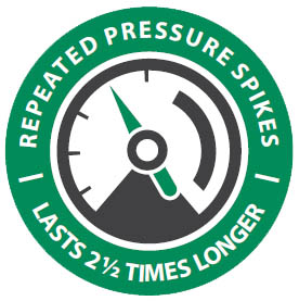 Пиковото натоварване на налягане е едно непрекъснато предизвикателство за продуктите при големите обекти. При този тест "изпитване на претоварване" се симулира ежедневен брой цикли на клапан, чрез повишаване на налягането във високи стойности отново и отново. При тези условия PGA клапаните надживяват подобните конкурентни модели с повече от 2 ½ пъти. Така че можете да бъдете уверени в работата на клапана PGA.