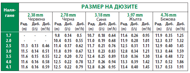 Проектиран за различни цели, където пълнокръговите разпръсквачи не трябва да разпръскват вода в зони с ограничен достъп. Тялото, кобилицата, втулката и щуцера са направени от устойчива пластмаса.