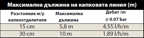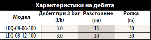 - Предлага се с разстояние между капкоотделителите 15.0 cm и 30.0 cm и с дължина на ролката от 30.0 m) за гъвкавост при проектирането.