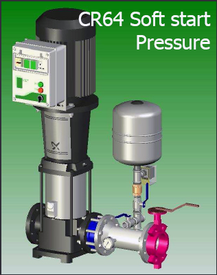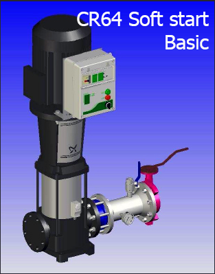 - Табло с плавен пуск монтирано на помпата. Осигурява плавен пуск и стоп на помпата. Това гарантира предпазването на системата от хидравличен удар и намалява пиковите токове при стартиране.