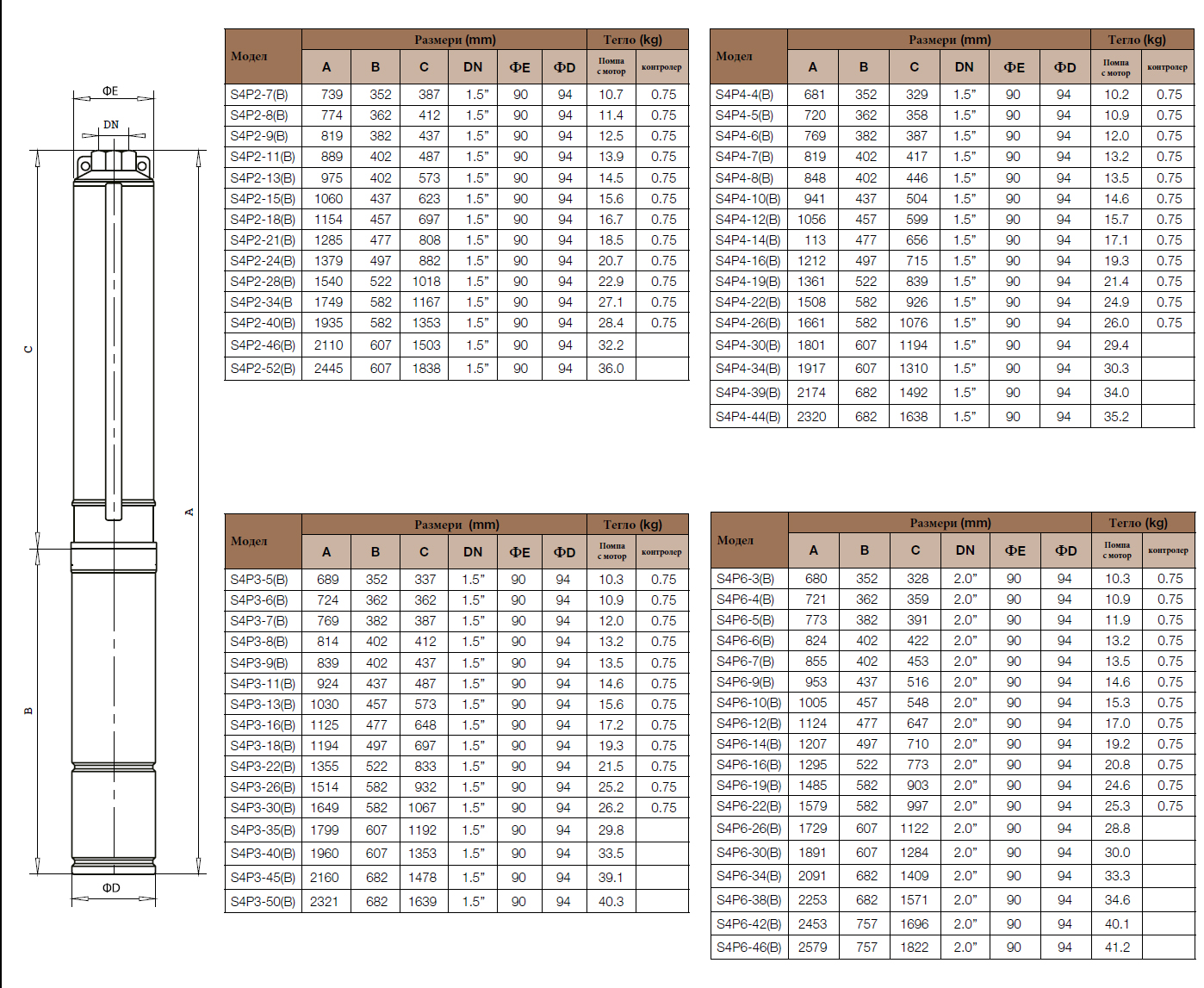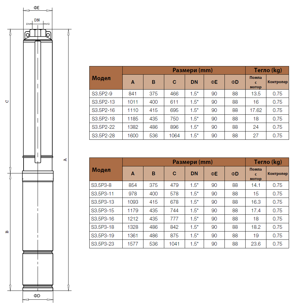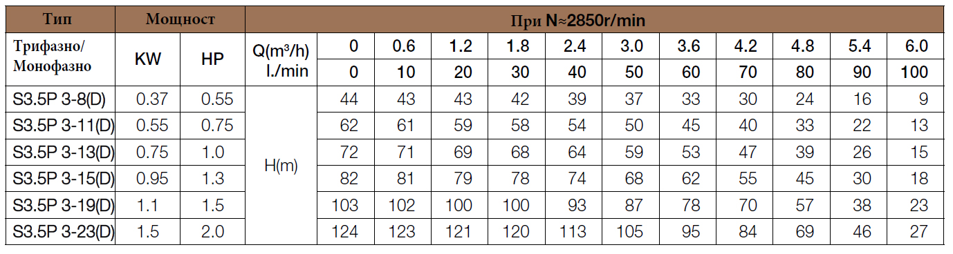 Сондажни потопяеми вертикални многостъпални моноблок помпи. Вклюват два модела: S3,5P и S4P. Диапазонът е специално проектиран да посрещне: