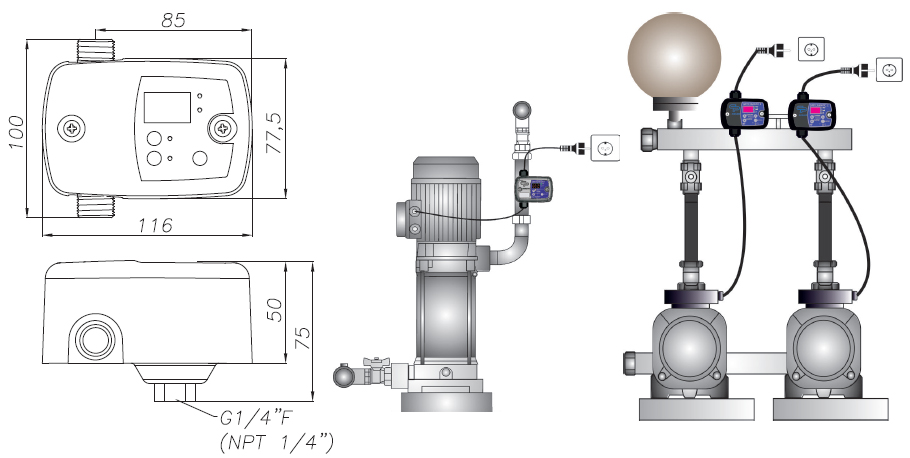 - • Входна резба: G1/4” F / NPT1/4” F вътрешна