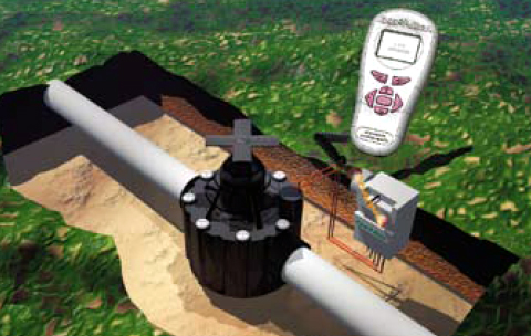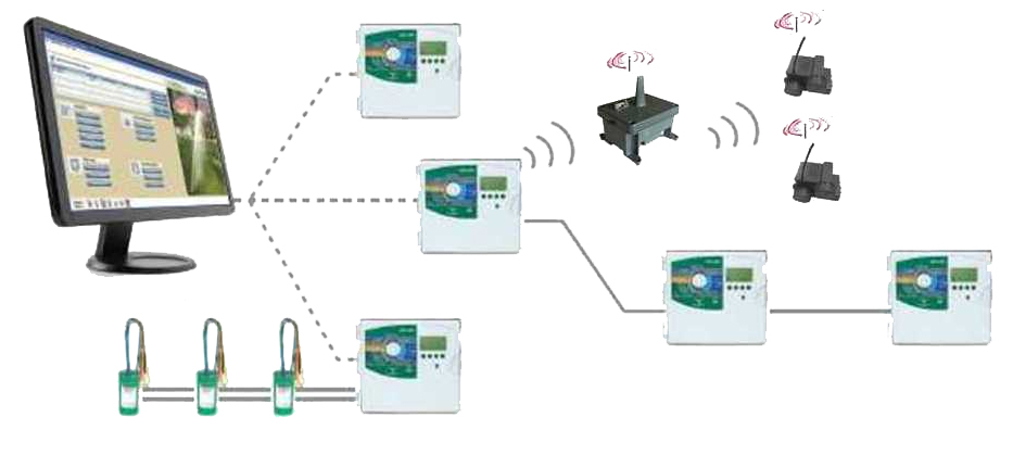 Концепцията на работа е същата, както при конвенционалната инфраред система. Единствената разлика е, че прехвърлянето на програмата може да се осъществи с радио предаване на разстояние до 200m. Радио интерфейс модулът се монтира на съществуващия контролен модул и прехвърлянето на програмата се осъществява чрез полевия предавател. Тази радио версия е разработена като система против – вандализъм, за да попречи на вандалите да открият позицията на контролните модули или клапаните. Можете да предавате или наблюдавате поливните програми без да отваряте шахтите за клапани.