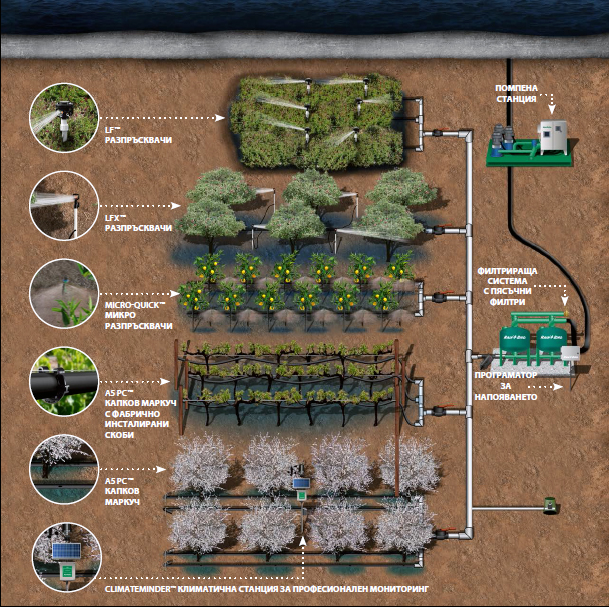 Напоителни системи за култури в сектор „Плодове и зеленчуци“ и