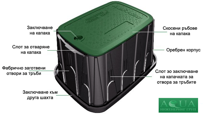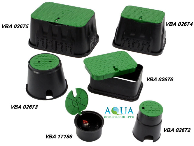 Rain Bird шахти за клапани серия VBA съчетават здравина и стабилност с уникални функции.- Предлагат се в различни размери и форми, за да предоставят гъвкавост при всяко приложение.