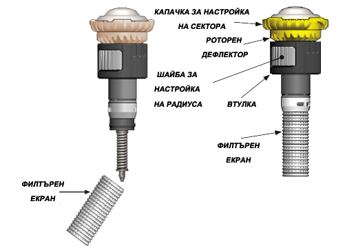 - Регулиране: сектор и радиус на поливане може да се прави и по време на поливанe