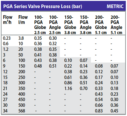 1. Загубите по налягане са отчетени при напълно отворен регулатор на дебита.