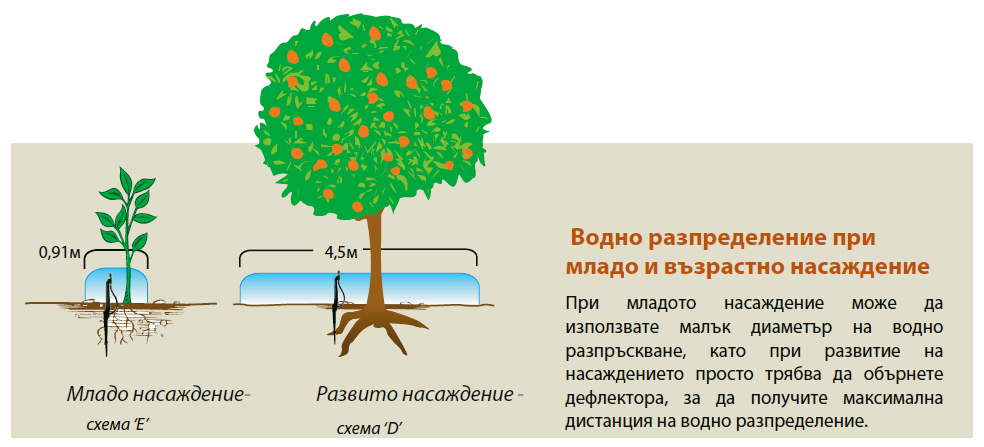 • Бърза смяна на дюзата/дефлектора за постигане на голям дебит или смяна схемата на разпръскване.