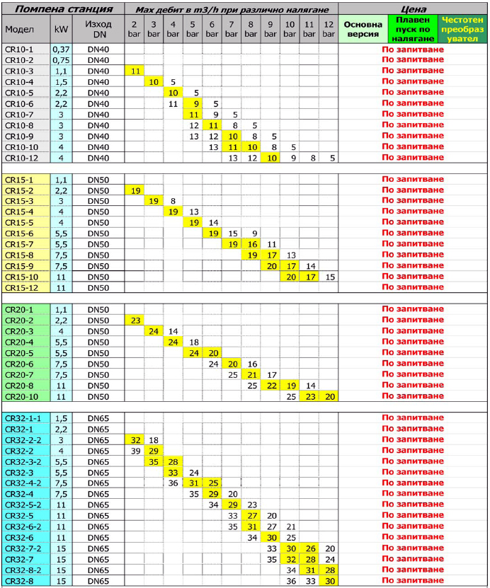 - Grundfos CR помпи с високо ефективен клас мотори EFF1- IP55, 3Ph, 400V, 50Hz, 2950 RPM.