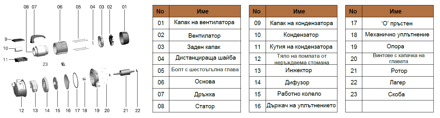 HJ: стандартните версии са произведени от неръждаема стомана AISI304 ; входа и изхода на помпата са от неръждаема стомана.