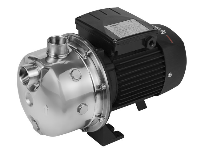 Самозасмукваща центробежна помпа, осигуряваща по-високо налягане и добра смукателна способност. Корпус на помпата и работно колело от неръждаема стомана, изхвърлящо устройство от полимер устойчив на абразия. Двигател с вградено автоматично нулиране при термично претоварване. Резбови смукател и нагнетател за бърз и лесен монтаж.