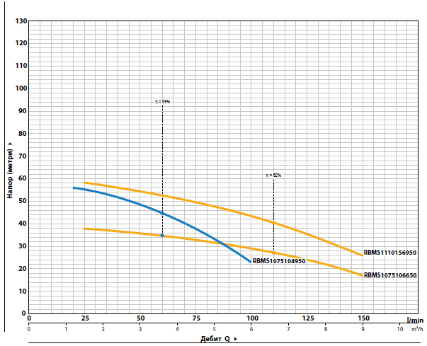 ДАННИ ЗА ЕФЕКТИВНОСТ - Серия RBMS 50 Hz n= 2900 rpm