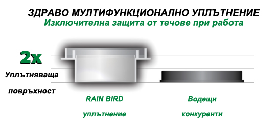 - Опция модел с вграден антидренажен клапан Seal-A-Matic (SAM™), задържа оттичането на вода от разпръсквача при денивелация на терена до 2,1 m, като по този начин предотвратява образуването на локви и ерозия около разпръсквача.